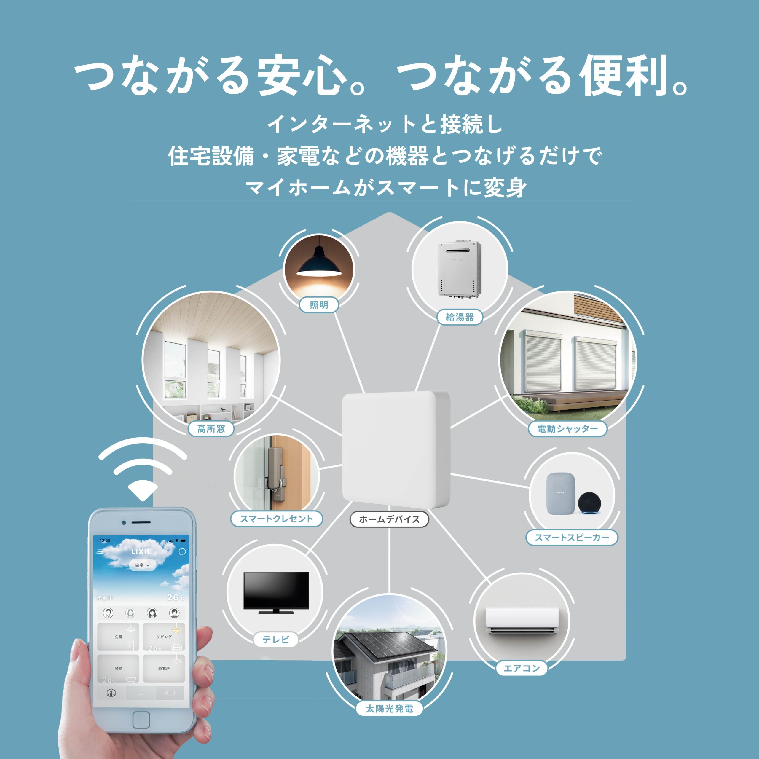 インターネットと接続し、住宅設備・家電などにつなげるだけで