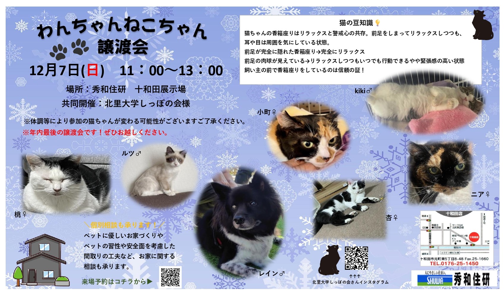 • 譲渡会のお知らせ(=^・・^=) ~十和田展示場~